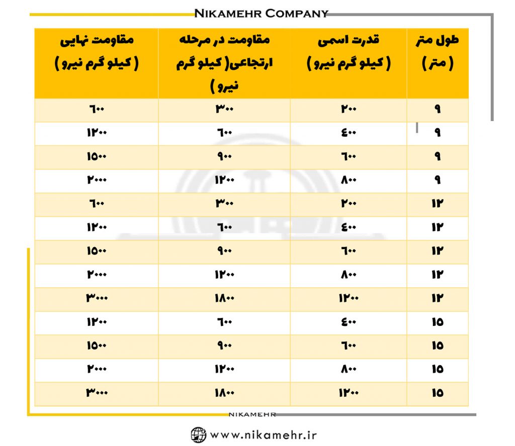 منظور از قدرت اسمی تیرهای بتنی مقدار بار قابل تحمل تیر در ظرایط کار همیشگی است . و قدرت نامی یا قدرت نرمال نیز گفته میشود . مقاومت در مرحله ارتجاعی تیر به مقدار ۵ / ۱ برابر قدرت اسمی تیر است . که در صورت وارد شدن به تیر و پس از برداشتن نباید در آن تغییر شکل همیشگی ایجاد شود . در پایه بتنی سالمی که برابر مشخصات فنی تهیه شده باشد . نیرویی که تحمل خواهد کرد . برای تیرهای با قدرت ۴۰۰ کیلو گرم نیرو و کمتر باید بالاتر از سه برابر و برای تیرهایی با قدرت بیش از ۴۰۰ کیلو . گرم نیرو باید بالاتر از ۵ / ۲ برابر نیروی مجاز باشد .